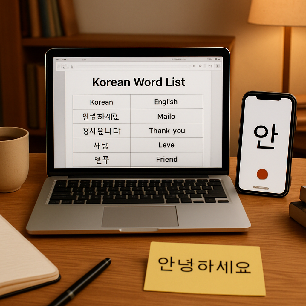 90 Day Korean offers a handy PDF of 100 basic Korean words plus a worksheet you can print and stick on your fridge. The list covers everything from 집 (house) to 밥 (rice) and even everyday verbs like 가다 (to go). Check out the free download and pick ten words that you’ll actually use today.